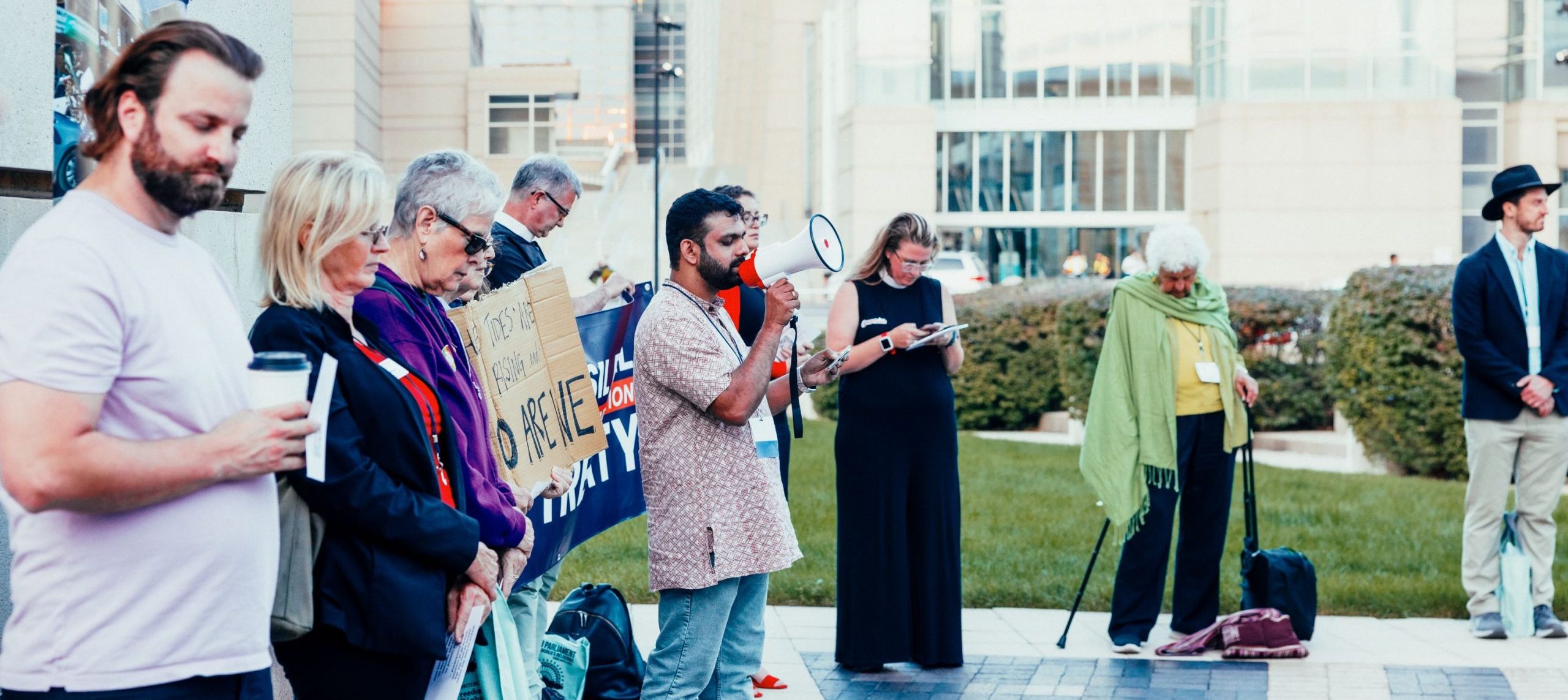 It was already over 90 degrees as we gathered early on June 7 to pray near the headwaters of the Mississippi, and temperatures would top 100 degrees in the days to come. We carried banners and signs, dressed in religious garb and sunscreen, ready to walk in the blazing sun: for water, for Mother Earth, for Life.